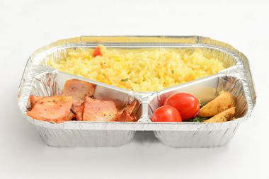 آلومینیوم سه خانه 729 (310) از ورق آلومینیوم تولید شده و نسبت به ظروف پلاستیکی، تجزیه پذیری بهتری دارد. این ظرف آلومینیوم سه خانه از رایج ترین ظروف برای بسته بندی مواد غذایی در رستوران ها و کترینگ ها می باشد.