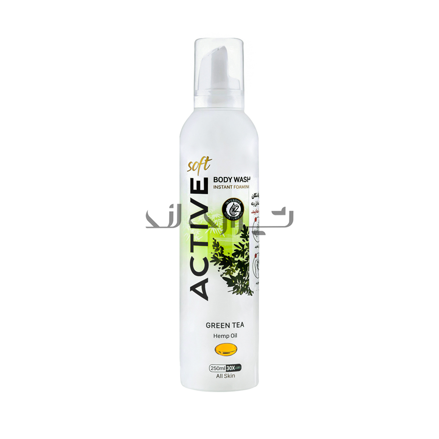 اسپری فوم بدن حاوی روغن شاهدانه و رایحه چای سبز اکتیو 250 میلی لیتر
