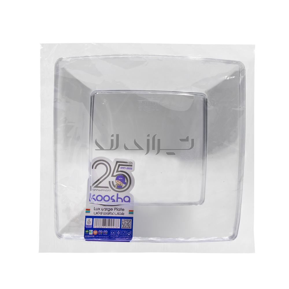 بشقاب بزرگ لوکس غذا شفاف دارای نشان سیب سلامت است و در تولید آن از مواد حساسیت زا و مضر استفاده نشده. این بشقاب شفاف، بی رنگ و سبک است و حمل آن آسان است. از این محصول در برخی مهمانی ها، رستوران، کترینگ، فست فود ها… استفاده می شود.