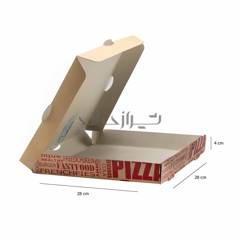 جعبه پیتزا کرافت چاپی 28 تولید شده از سه لایه کاغذ کرافت و عایق حرارتی مناسبی برای گرم نگه داشتن پیتزا می باشد. این جعبه ها دارای پروانه بهداشت و مناسب سفارش های بیرون بر هستند.