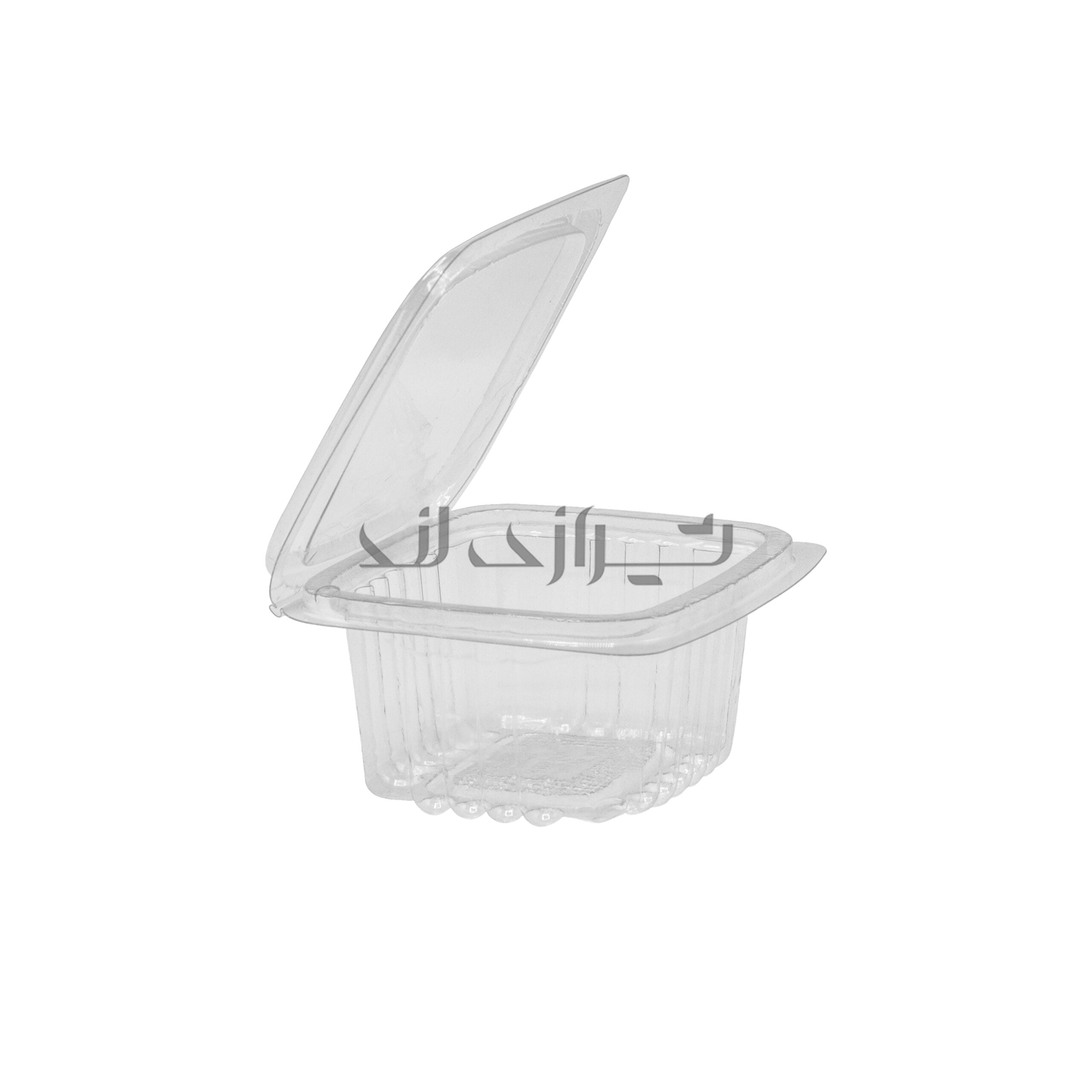 دلی 200 مربع پرشیا از مواد اولیه پت تولید شده است که شفاف و بی رنگ می باشد. از این ظرف برای بسته بندی سبزیجات، دسر، خشکبار، سیفی جات و… استفاده می شود.