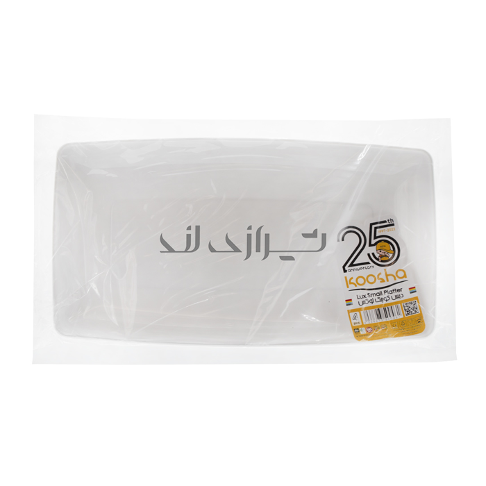 دیس کوچک لوکس سفید از پلی استایرن تولید شده است و به رنگ سفید می باشد. از این دیس برای سرو مواد غذایی مانند مرغ، برنج، کباب…، انواع سالاد، دسر و… استفاده می شود.