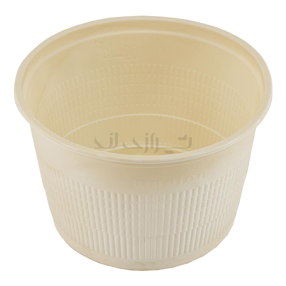 سطل 2500 گیاهی آملون از مواد طبیعی مثل نشاسته ذرت تولید شده است. به علت مواد اولیه طبیعی که دارد، بازیافتی می باشد و جایگزین مناسب تری نسبت به پلاستیک هستند. این ظروف در صورت تماس با غذای دمای گرم یا سرد هیچ واکنش منفی ندارد. معمولا در کافه، فروشگاه، رستوران…. برای بسته بندی محصولات کاربرد دارند.