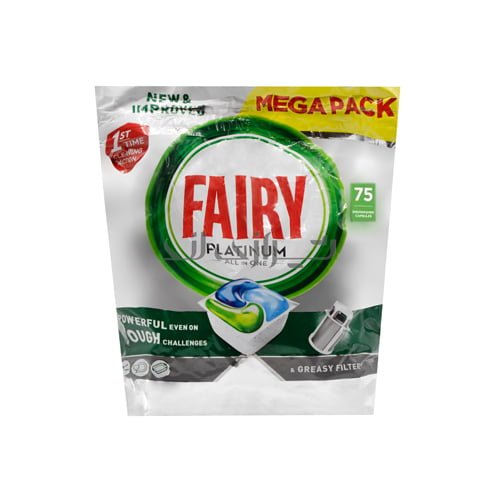 قرص ماشین ظرفشویی فایری بسته 72 – 75 عددی دارای ویژگی هایی از جمله تمیزکنندگی و جرم گیری بالا، جلا دهندگی، سفید کنندگی، لکه بری و چربی زدایی می باشد.